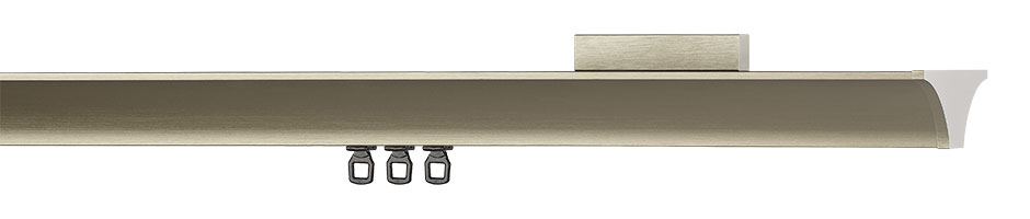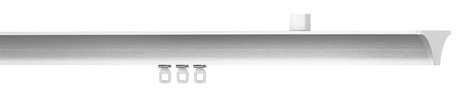 Wie ein Schirm breitet sich LEP schützend über dem Vorhang aus und kann es dank seines starken Auftritts auch mit schweren Stoffen aufnehmen. Dezente Reflektionen auf den edlen Oberflächen lockern auf und sorgen je nach Lichtstimmung für angenehme Abwechselung.