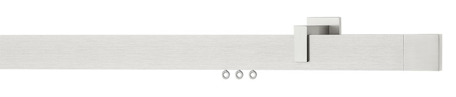 Klar, schlicht aber mit dem Gewissen Etwas – ein Profil, das mit seiner betonten Sichtseite Vorhänge edel in Szene setzt. Seine architektonische Anmutung erhält es durch den versteckten und damit unsichtbaren Laufkanal, der von plakativen Endkappen abgeschlossen und eingerahmt wird.