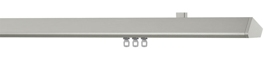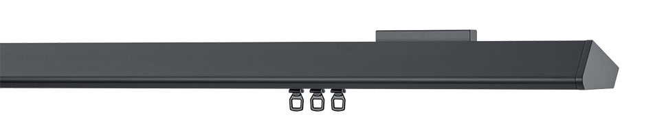 NEXUS ist auffallend anders durch seine extrem flach wirkende Sichtseite, die nach hinten fluchtet. Die breite, plane Profilunterseite versteckt den Laufkanal und der Vorhang scheint zu schweben.